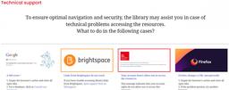 To ensure optimal navigation and security, the library assists you in case of technical problems: What to do if you get a 404 error? What to do if links from Brightspace don't work? How do you deal with Firefox changing URLs unexpectedly? You'll also find on this page recommendations for browsers or authentication.